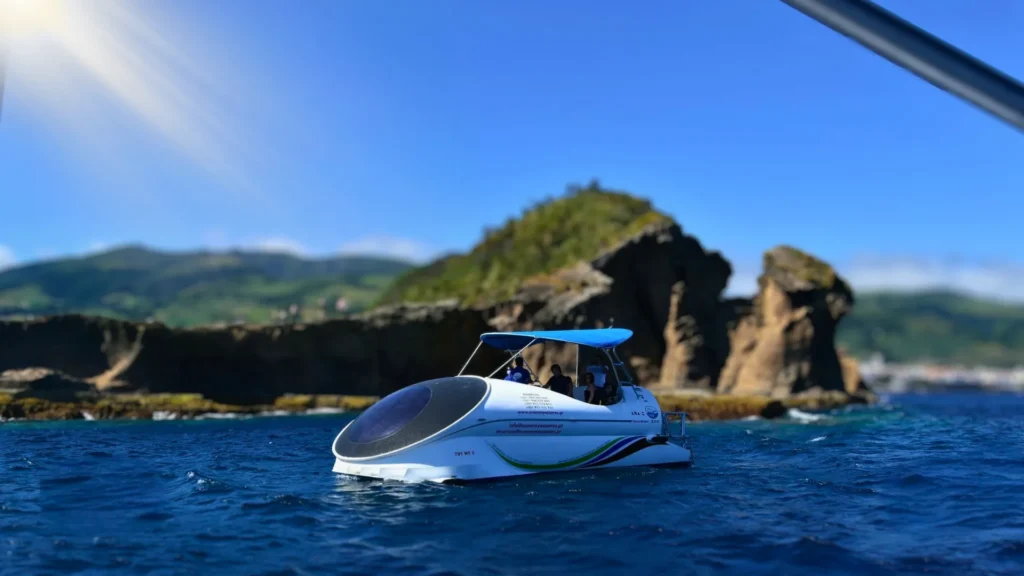 Desfrute de uma experiência marinha única navegando pelas belas águas de São Miguel com um barco de fundo de vidro que lhe permite observar o mundo subaquático sem se molhar.