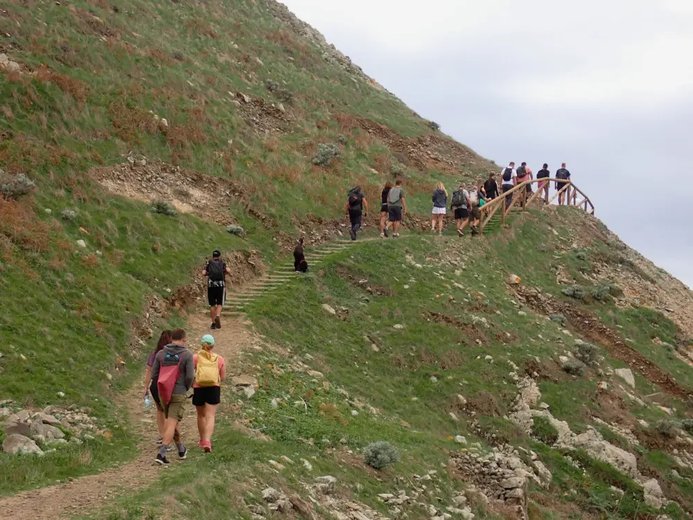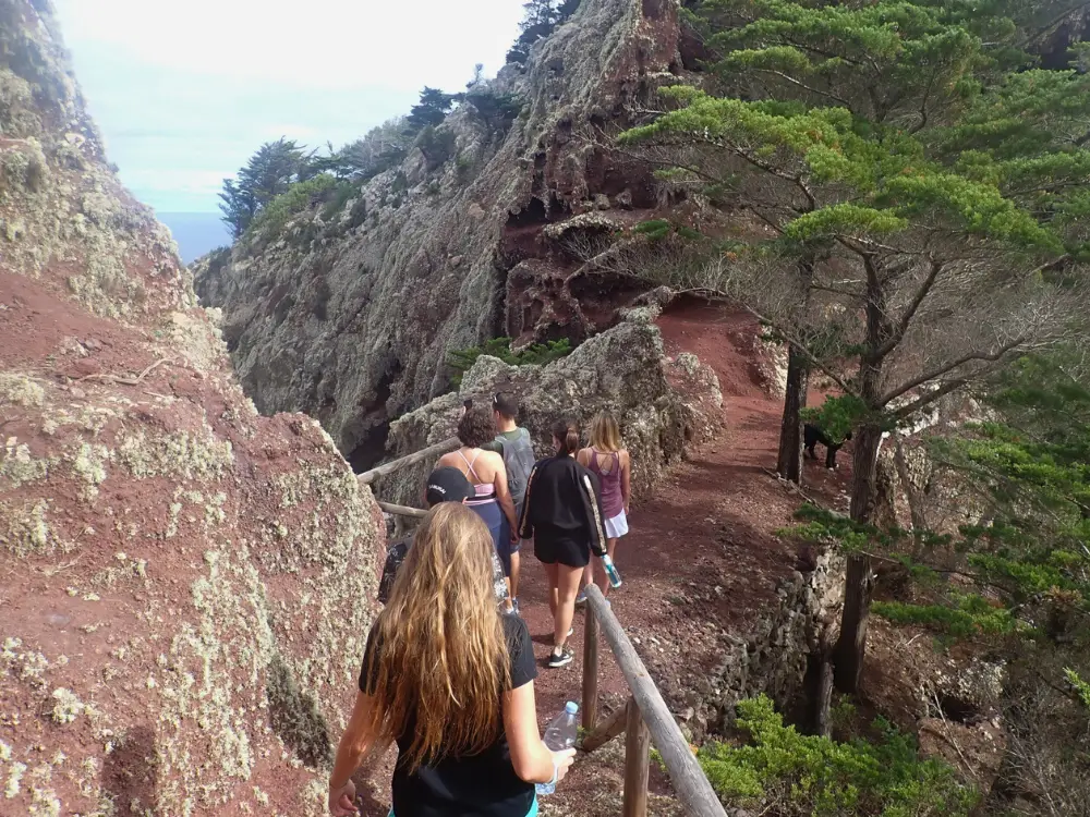 A vereda da Terra Chã e do Pico Branco não é apenas mais um passeio — é uma verdadeira viagem pela história viva e pelas maravilhas naturais de Porto Santo. O percurso começa num antigo caminho de pedra, construído no início do século XX. Há algo de mágico em seguir os mesmos passos que, durante gerações, serviram tanto a locais como a viajantes, cada pedra a ecoar histórias de quem por ali passou.